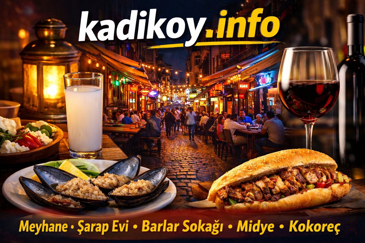 Bu rehberde Kadıköy meyhane, Kadıköy şarap evi, Kadıköy barlar sokağı, Kadıköy midye ve Kadıköy kokoreç aramalarında en çok merak edilen detayları bir araya getiriyoruz.